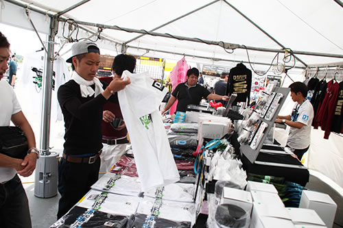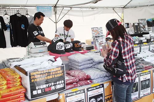 - 大きめタオルはモータースポーツ観戦のマストアイテムとして人気だけど、D1でも定番中の定番として大人気! こちらのスポーツタオルは2014年のテーマである『WORLD No.1 DRIFT』が大胆にアレンジして入れられているデザイン。観戦時は日除けとしても使えるし、帰ってからもいろいろ使いまわせることからお土産としても人気なのだ♪
