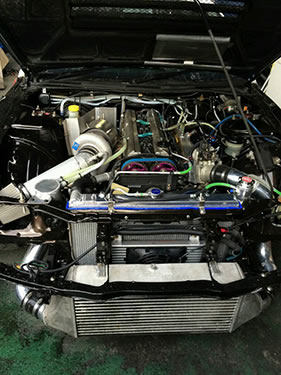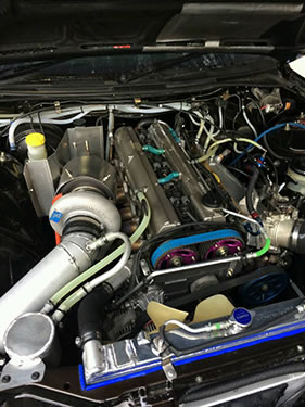 今シーズンからNOSが禁止になったことにともない、開幕前から構想されていたが、部品や製作が遅れてオートポリスからの投入になった。6月末にはすでにシェイクダウンが済まされており「エンジンの重さはかんじるけど、車高調を2JZ搭載前提で作成してもらったので、それほど気にならない」と好感触。