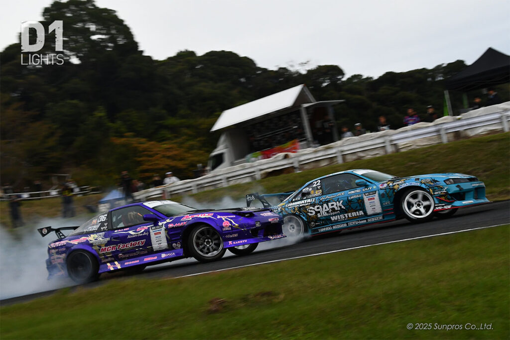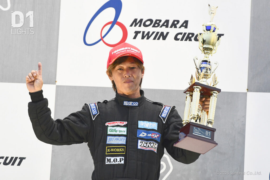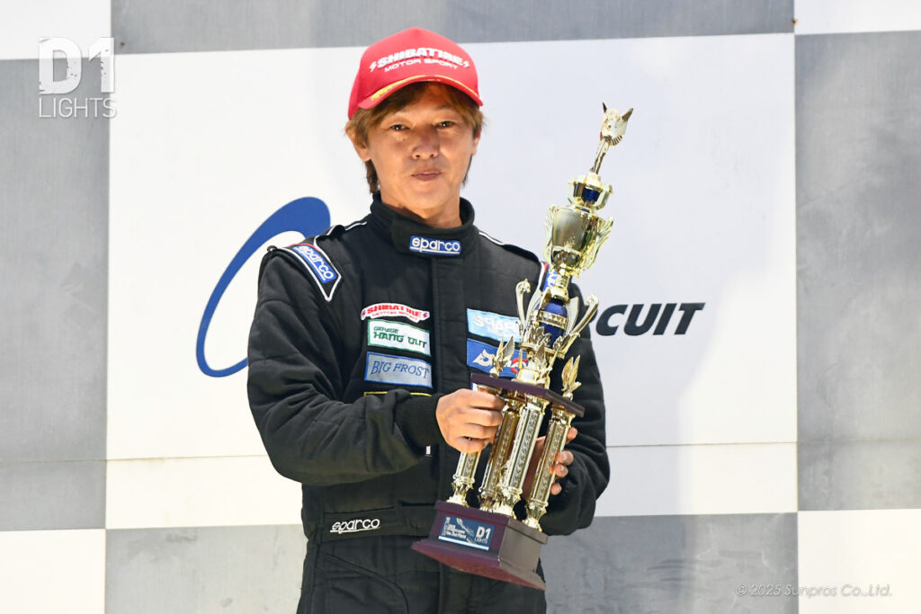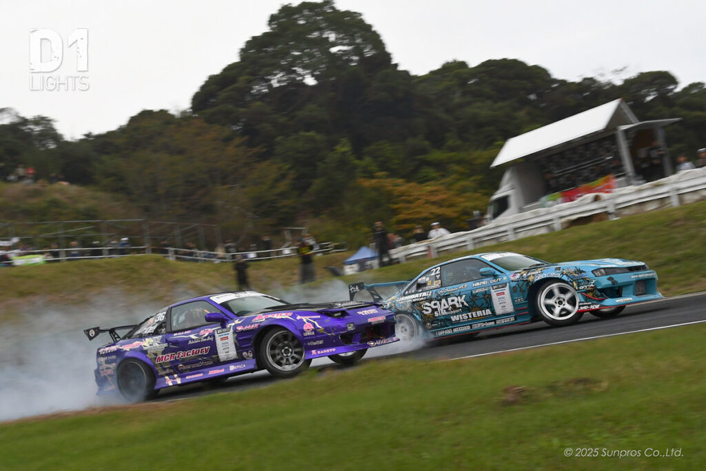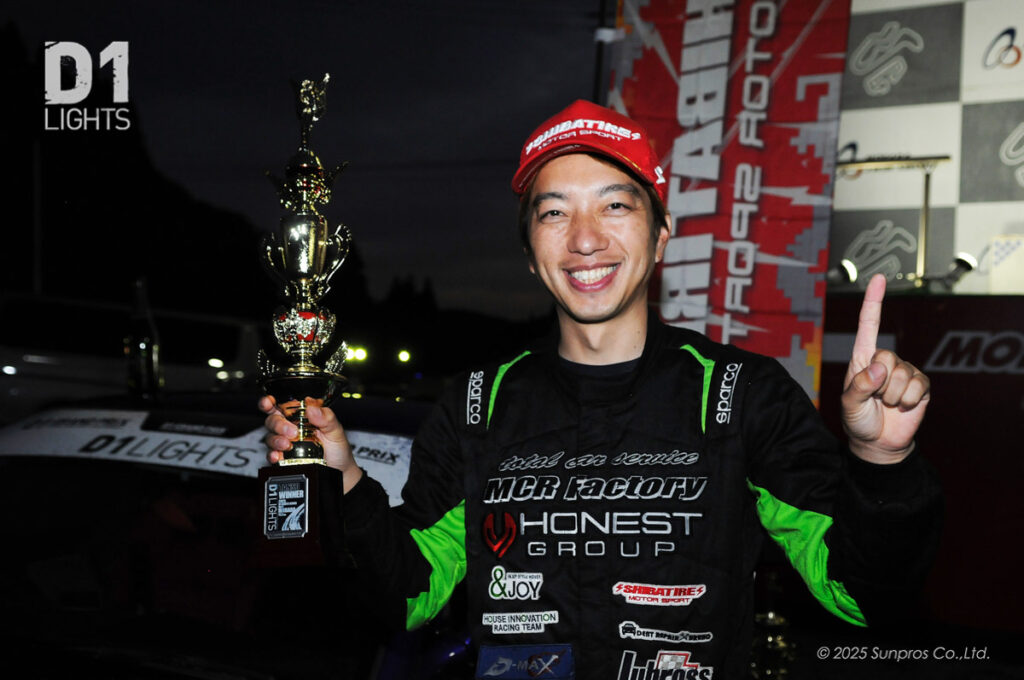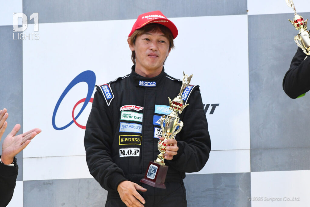 今年D1ライツに出てきたのは、そもそもチャンピオンを獲るためで、そのために、2022年のままの仕様じゃ勝てないと思ったので、いろんなひとの協力で、クルマもちょっとアップデートして、しっかりメンテナンスして、SRエンジンのままなんですけど、そのパッケージで、めちゃくちゃパワーあるっていうかんじじゃないですけど、ライツではバランス的にすごいいいかんじで走れる状態で開幕から行ってたので、そのみんなの協力があって、シリーズ獲れたかな、と思います。