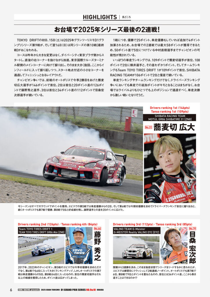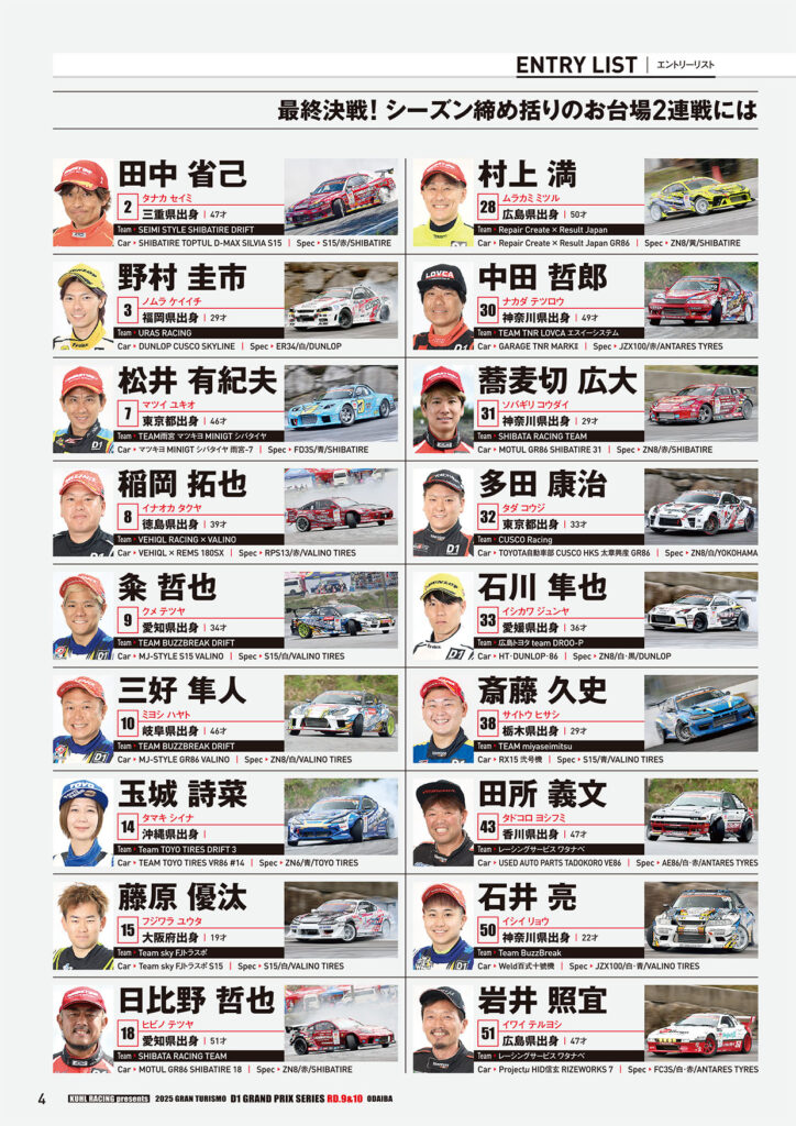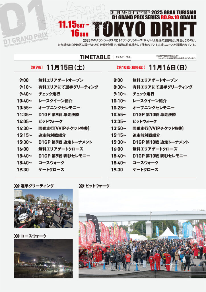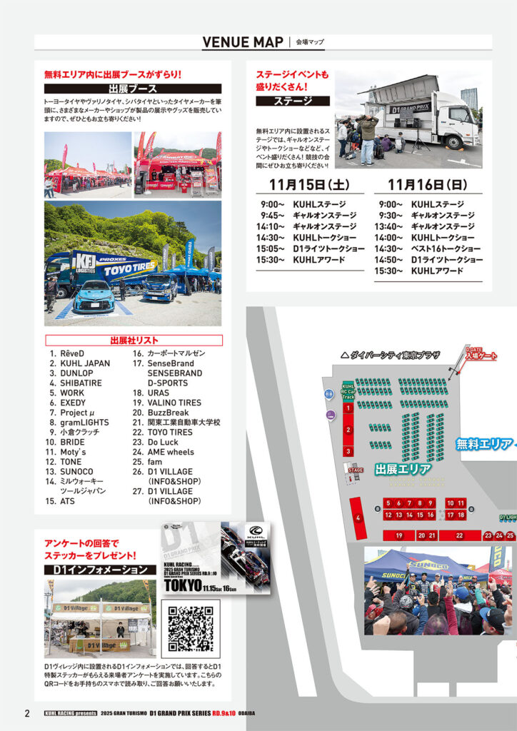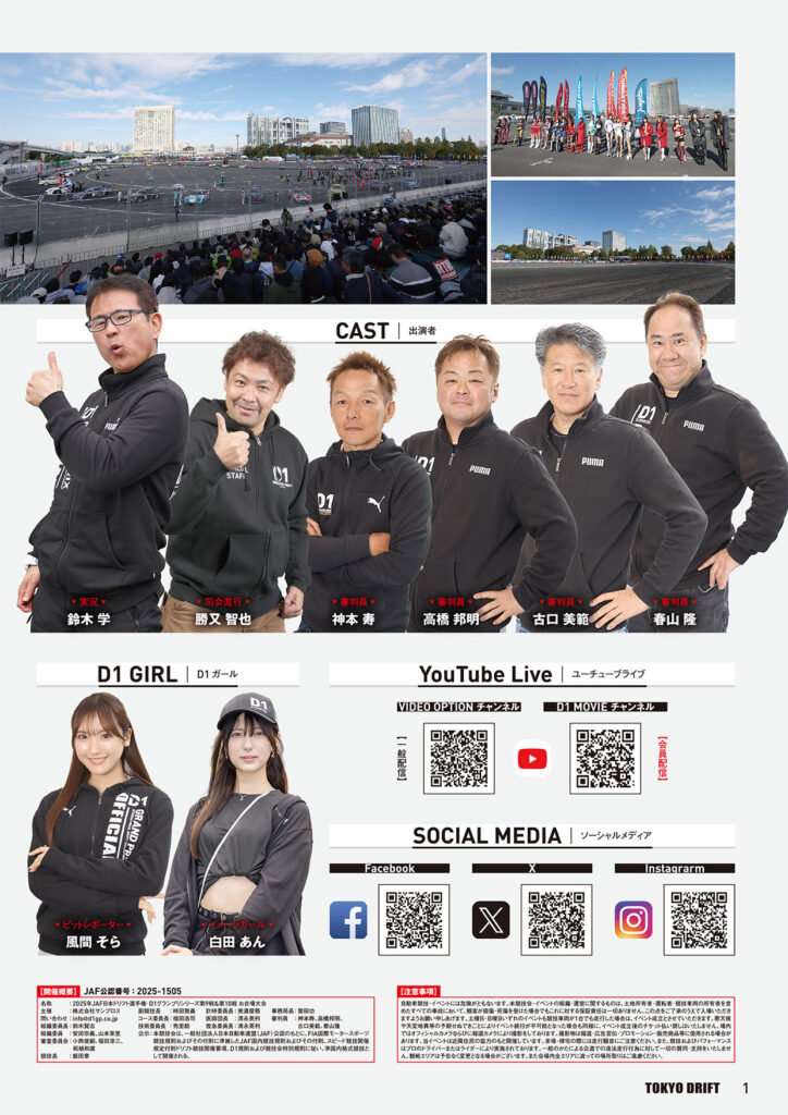 【 ご注意 】自動車競技・イベントには危険がともないます。本競技会・イベントの組織・運営に関するものは、土地所有者・運転者・競技車両の所有者を含めたすべての事故において、観客が損傷・死傷を受けた場合でもこれに対する保証責任は一切ありません。この点をご了承のうえで入場いただきますようお願い申しあげます。土曜日・日曜日いずれのイベントも競技車両が1台でも走行した場合は、イベント成立とさせていただきます。悪天候や天変地異等の予期せぬできごとによりイベント続行が不可能となった場合も同様に、イベント成立後のチケット払い戻しはいたしません。場内ではオフィシャルカメラならびに報道カメラにより撮影をしております。撮影物は報道・広告宣伝・プロモーション・販売商品等に使用される場合があります。当イベントは近隣住民の協力のもと開催しています。来場・帰宅の際には走行騒音にご注意ください。また、競技およびパフォーマンスはプロのドライバーまたはライダーにより実施されております。一般のかたによる公道での違法走行行為に対して一切の賛同・支持をいたしません。観戦エリアは予告なく変更となる場合がございます。また会場内全エリアに渡っての場所取りはご遠慮ください。