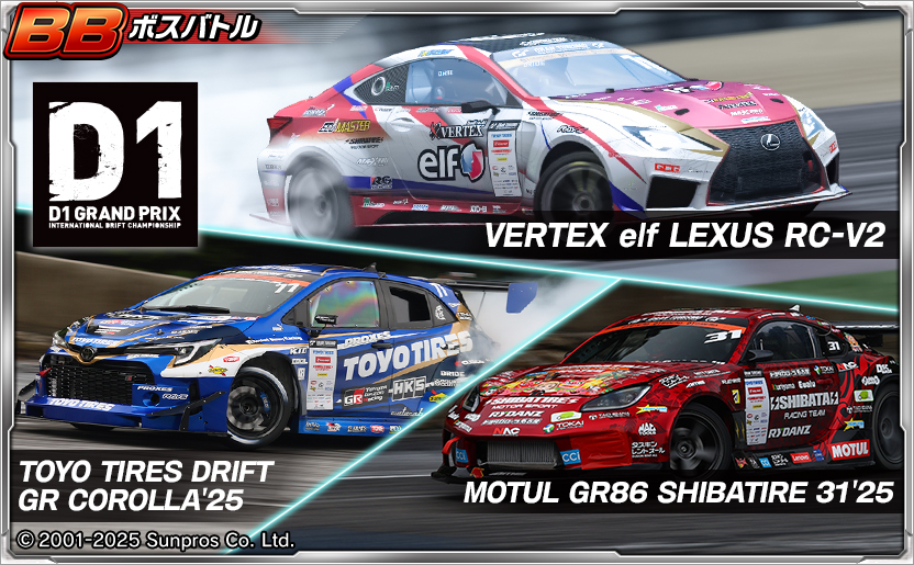 D1GPとのコラボ開催を記念し、「D1GPコラボ記念キャンペーン」を開催!期間中にログインすると中村龍選手の車両と仲間が手に入る!この機会をお見逃しなく!