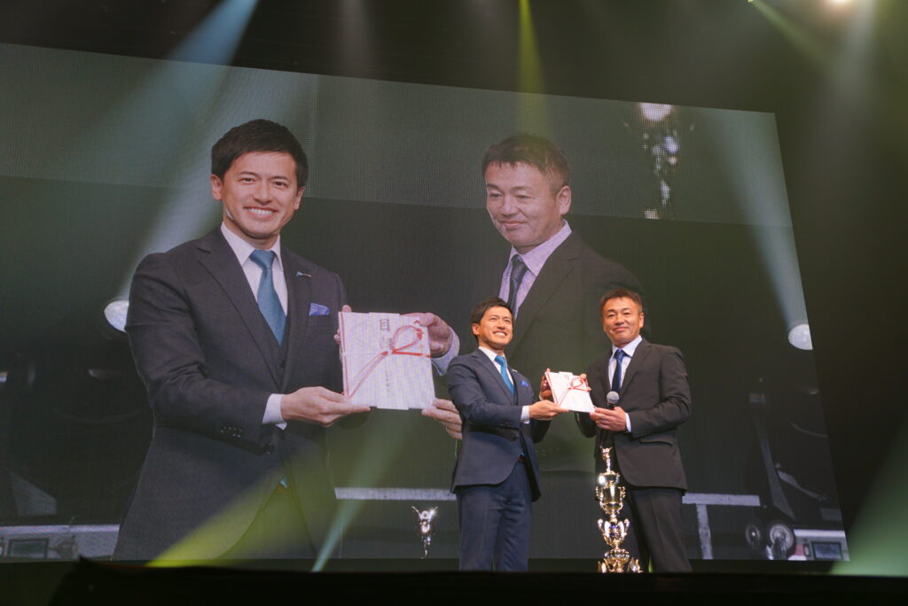 今年の敢闘賞には⽬桑宏次朗選手、⽟城詩菜選手、⽯川隼也選手の3名が選ばれました。表彰式の途中には、下⽥紗弥加選手の復活参戦発表があり、会場をにぎわせました。