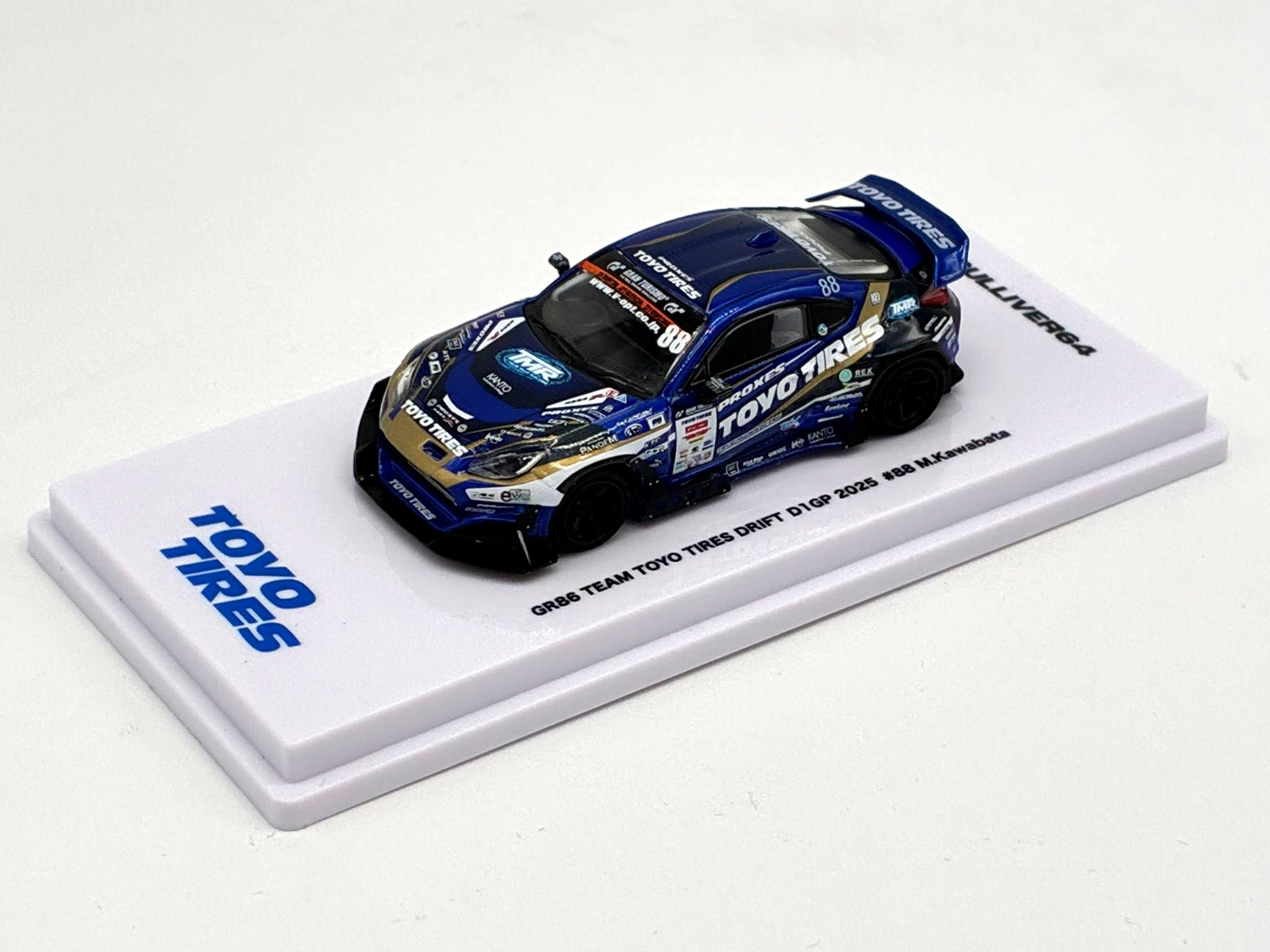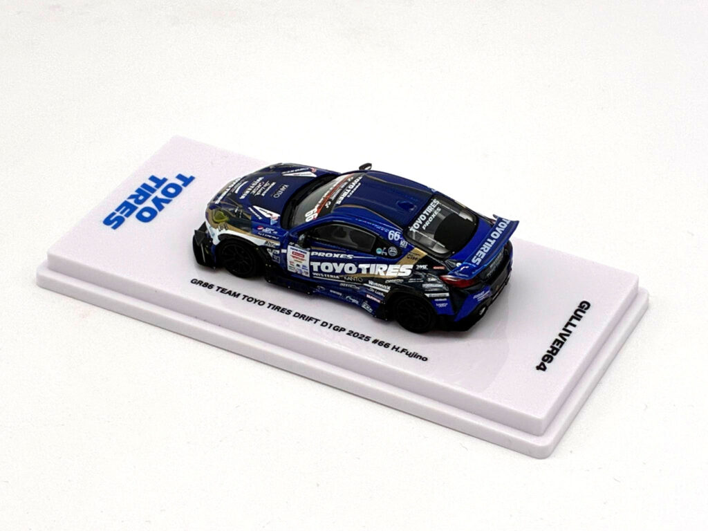 2025年度の走行マシンを完全再現。台座にはTOYOTIREのロゴ入りでそのまま飾ってカッコいい仕様となっております。ぜひ2台そろえてコレクションに追加してください。