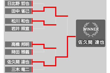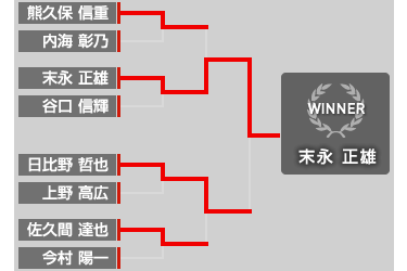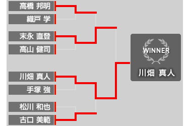 Bブロックは、末永(直)と川畑が決勝で対戦。再戦までもつれたが、川畑がスピードで上まわりブロック優勝となった。