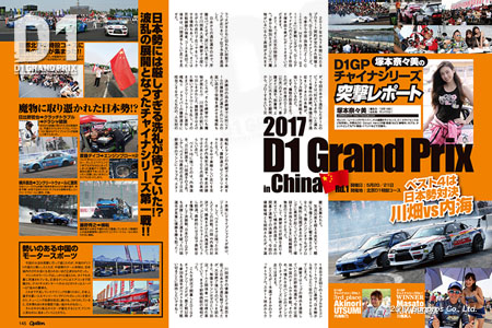 特別付録DVD付きのオプション8月号は、昨年までD1ストリートリーガルシリーズに参戦していた塚本奈々美選手によるD1グランプリシリーズインチャイナの突撃レポートを掲載。