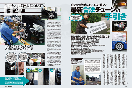 また、最近の保安基準の改正、特に「タイヤのハミ出し」が緩和されたことはD1ファンなら知っていると思う。この機会にこの改正項目からチューニングカーに関わるポイントを詳しくまとめてみた。ドリフトもFIA公認競技になった今、堂々と街を走れる合法仕様で楽しく走ろう!!