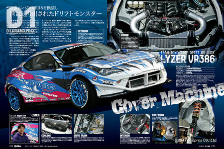 オプション2月号は、D1次シーズンに投入される『TEAM TOYO TIRE DRIFT DO-LUCK/LYZER VR386』が表紙!! ドゥーラックが最新&最強を求めて進めてきたLYZER VR386プロジェクト。86にR35GT-R用のエンジンを乗せた1000psオーバーのモンスター86の活躍に期待しよう!!