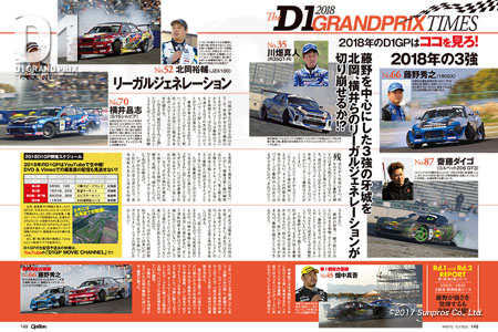 今夏、500号を向かえるオプション6月号は、『D1 GRANDPRIX TIMES』にて、既に3戦が終わった時点でシリーズ優勝を争う勢力図を考察している。昨年のシリーズチャンプである藤野選手を中心にした優勝経験者・川畑選手と齋藤選手の3強の牙城を北岡・横井・畑中選手らストリートリーガルで腕をみがきジャンプアップしてきた世代がどう切り崩せるかが今年の見どころ!!