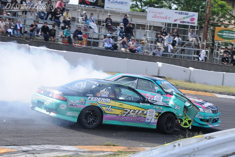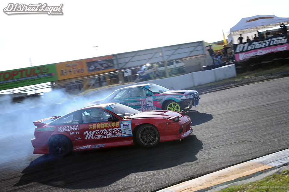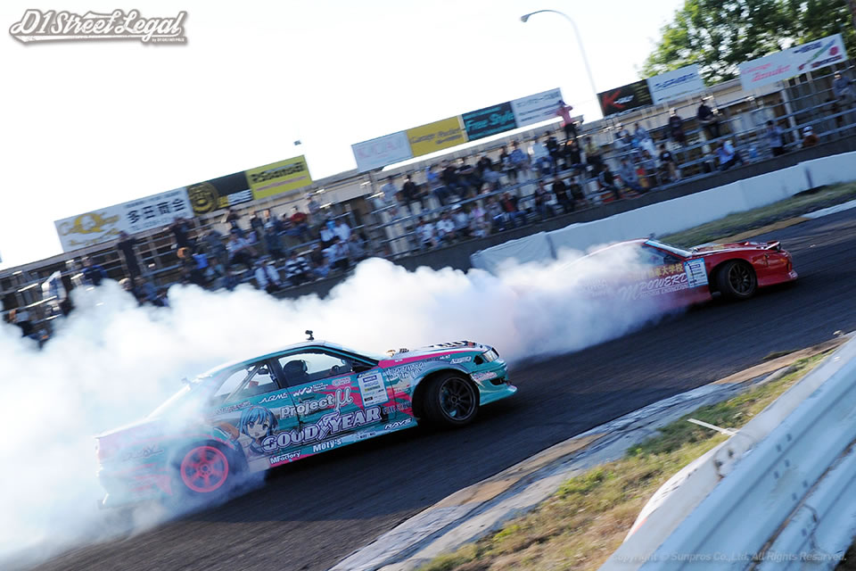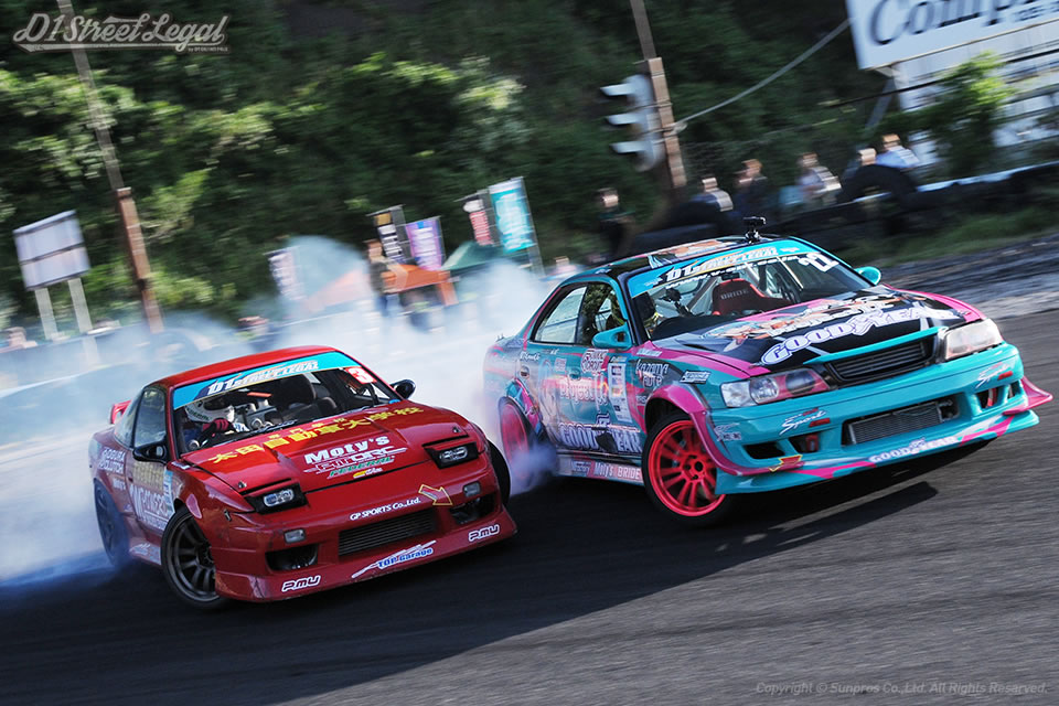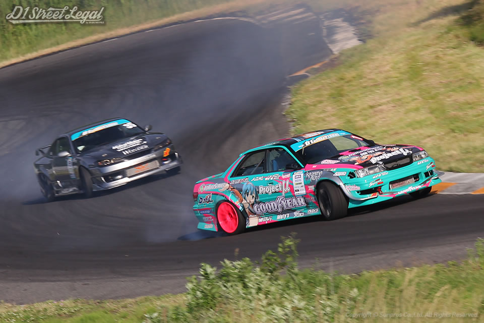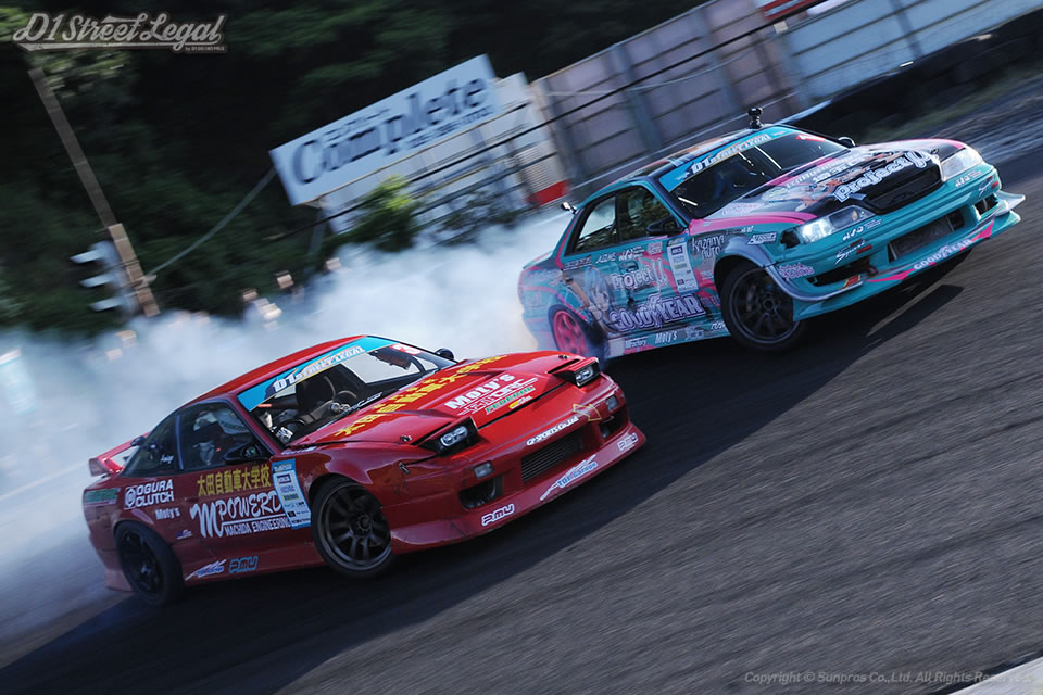 北岡は一昨年のD1ストリートリーガルシリーズチャンピオン。若松は過去にD1グランプリシリーズで準優勝の経験もある名手だ。