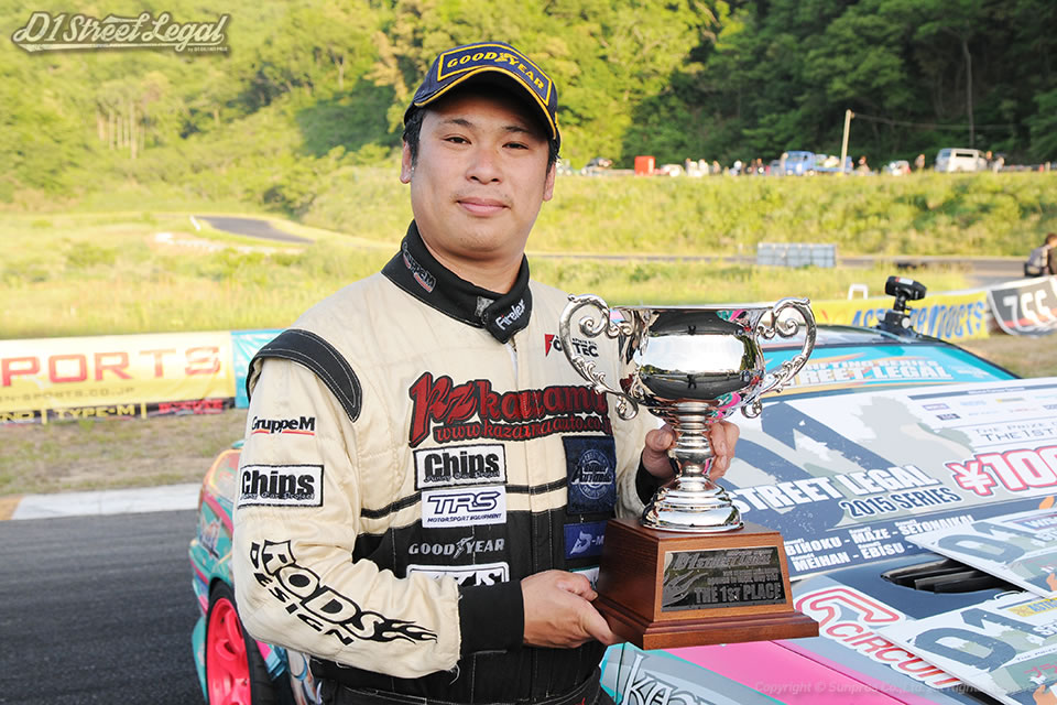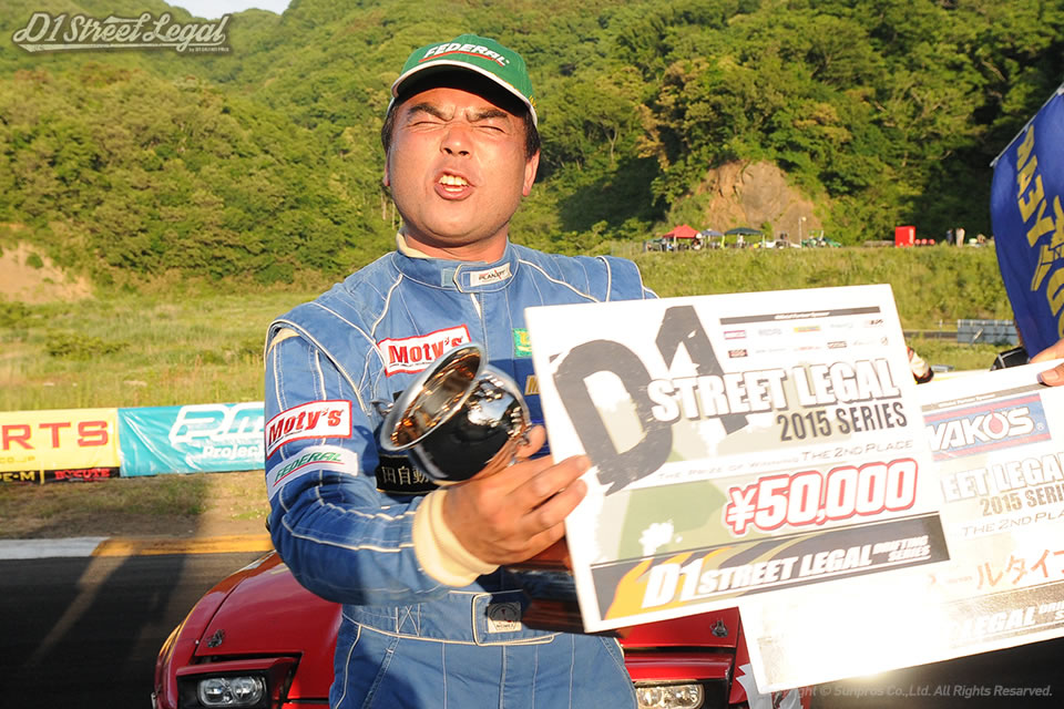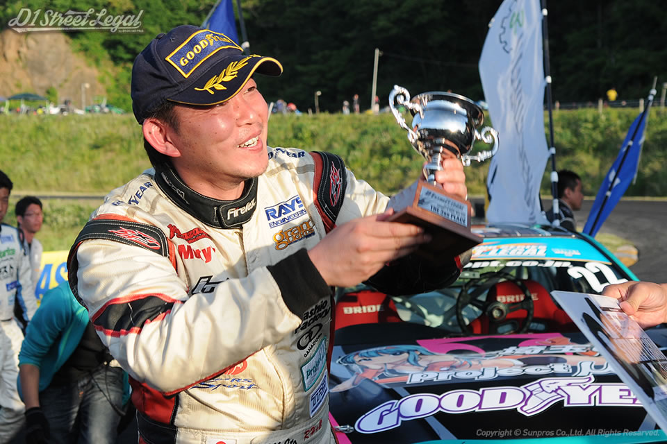 決勝戦の若松さんとは練習のときに1回だけ絡んだんですよ。ほかにいるメンツととちがって速いクルマなんで…やっぱりちょった変えて挑みましたね。空気圧とか減衰力も変えて"若松対策"ってかんじでいきました。まぁそれがよかったのもありますし、換えのタイヤもなかったんで、それしかやることなかったってのもありますけど。